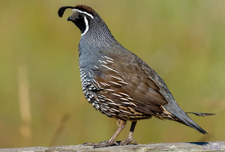 During our visit to Bodega Bay, California Quail was a common sight. This one perched on a log, beautifully set against a soft, buttery background. As the California state bird, established in 1931, these small ground-dwellers are easily recognized by their distinctive forward-curving crest (black in males, brown in females) and brown flanks streaked with white.