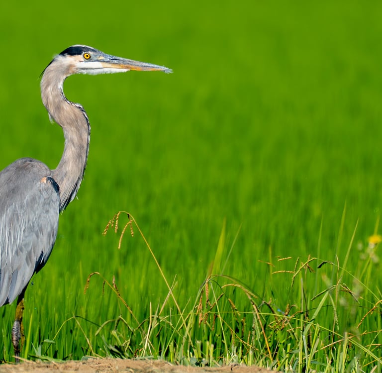 We recently discovered the Llano Seco Unit, a beautiful new location just 10 miles southwest of Chico in Butte County. This spot is well-equipped for visitors, offering a restroom, an information kiosk, an observation deck, an observation mound, and a trail to explore. We can't wait to return when the fall rain arrives! A highlight of our trip was spotting a Great Blue Heron in route, taking a peaceful break from hunting. It was the perfect chance for us to pull over, unwind, and snap some fantastic photos.